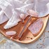 Pierre : quartz rose. Manche du rouleau de massage : alliage de zinc.
