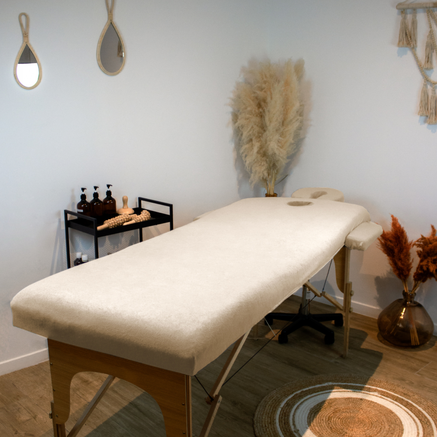 Disponible en plusieurs coloris harmonieux , il permet de créer une atmosphère cohérente et professionnelle dans votre espace, qu’il s’agisse d’un spa, d’un institut, d’un cabinet de kinésithérapie ou d’ostéopathie, ou même à domicile. Cette housse donne une image soignée de votre activité et rassure vos clients sur l’hygiène de votre équipement.