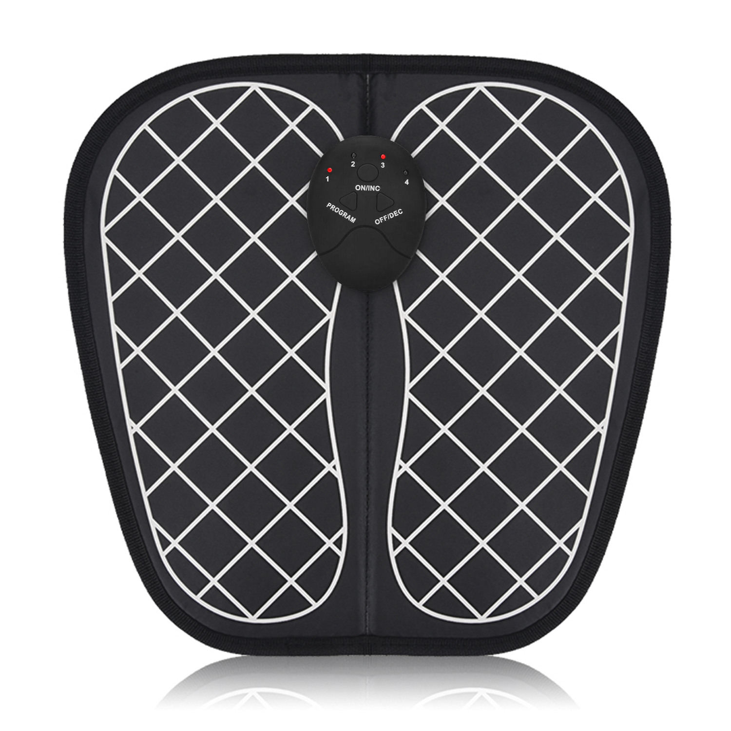 Stimulateur de pieds EMS portable : • Comme le dit le proverbe, les pieds sont le deuxième cœur. Le tapis de massage des pieds EMS, en envoyant une impulsion électrique depuis l'unité de commande amovible, peut simuler la sensation de tapotement, de massage et de caresses sur les pieds, les chevilles, les tendons d'Achille et les muscles des mollets. • 6 modes avec 10 niveaux d'intensité : - Automatique : fluctuation lente et moyenne du microcourant - Massage : pression progressive de légère à forte - Squeeze : pression verticale avec force intermittente - Pression : pression continue de petite à forte - Tapotement : tapotements continus et courts intermittent - Mélange : massage, pressage, pression, tapotements, mixage. • Capture intelligente des points d'acupuncture, pour tous types de pieds et différentes tailles. Soulage la plante des pieds et calme la fatigue des pieds. • Fonctionne avec 2 piles AA (non incluses).
