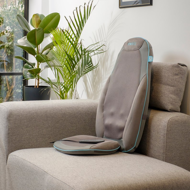 Vous avez également le choix d'une zone de massage personnalisée, de 3 vitesses de massage, d'un massage fixe à l'endroit de votre choix, de la fonction légère chaleur par infrarouge pour favoriser la relaxation, de l'ajustement de l'écartement des billes de massage et du massage par vibration pour faire fondre les tensions.