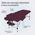 La  table  de  massage  2 zones  en aluminium  Vivezen est conçue aussi bien pour les  professionnels  que pour les  particuliers  qui souhaitent faire du massage à domicile, elle combine tous les avantages d'une table fixe et d'une table  pliante  en un seul produit. La table dispose d'un revêtement en  similicuir  et d'une belle  mousse  épaisse en polyuréthane ayant une densité de  24 kg/m3 .  Confortable  et  esthétique , elle est d'une qualité professionnelle. Avec une structure en  aluminium  et des câbles de support en acier, cette table est  stable  et  robuste . Elle peut supporter jusqu'à  250 kg . Facilement transportable grâce à sa  housse de transport , elle vous suivra de partout. Se  pliant et se dépliant simplement , vous pouvez aussi ajuster la table de massage à votre guise avec un repose-bras antérieur, deux repose-bras latéraux, une têtière ainsi qu'une  cavité visage , l'ensemble étant amovible, remplissant les besoins de chacun. La table  2 zones en aluminium  est  réglable en hauteur  de 58 à 78 cm. La surface allongée sans appuie-tête et accoudoirs est de 185 x 70 cm, et la surface allongée avec appuie-tête et accoudoirs est de 215 x 90 cm. Épaisseur de la table (structure plus mousse) : 7.5 cm. Plusieurs coloris disponibles.