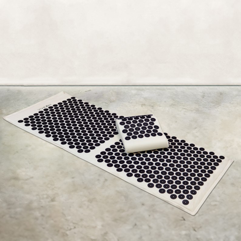 Grâce à ses micro-pointes en forme de picot , le tapis réduit notamment la perte d'énergie , soulage le stress, les insomnies, les maux de dos et de jambes . Le coussin, quant à lui, cible et calme les douleurs au niveau de la nuque , des cervicales ou encore des épaules . Il apaise également les migraines .
