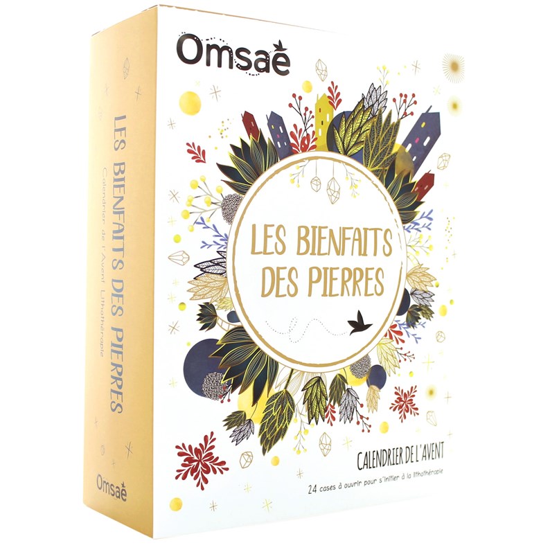 Calendrier de l’Avent idéal pour s’initier à la lithothérapie au travers des propriétés de 23 pierres. Une belle collection à former en 24 jours avec : 21 pierres roulées, 1 coeur et 1 cube. Basée sur l'utilisation des pierres, la lithothérapie permet l'harmonisation des énergies, d'une personne ou d'un lieu. Pour faire de chaque jour une nouvelle découverte, Omsaé a sélectionné des pierres naturelles aux propriétés variées.