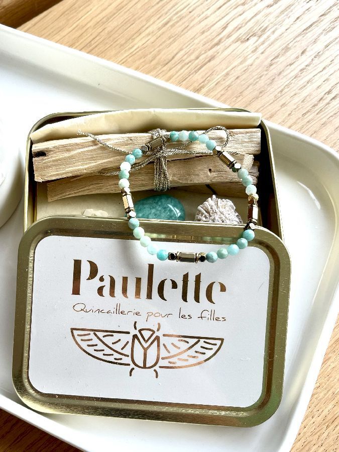 - une pierre en Amazonite de grande qualité : l'amazonite apaise les débordements émotionnels, elle régule les émotions et apaise les hypersensibles.