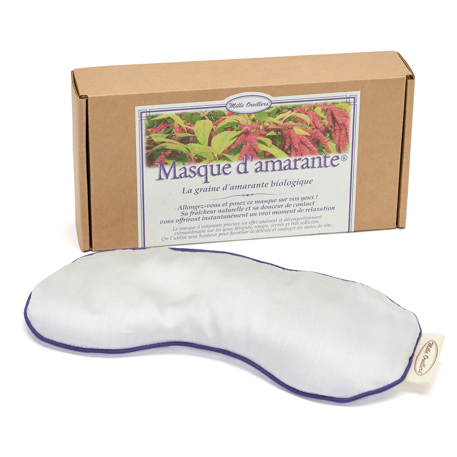 Le masque d'amarante bio de la marque Mille oreillers apaise les yeux fatigués ou cernés grâce aux propriétés décongestionnantes et rafraîchissantes des graines d'amarante.