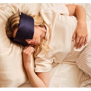 Masque de nuit bandeau en soie bleu nuit