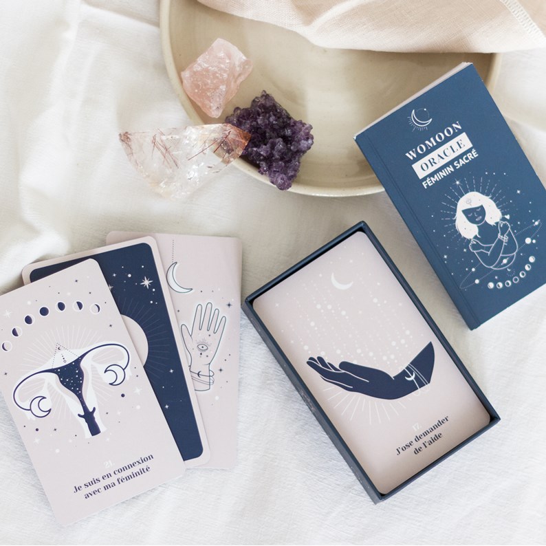 L'oracle Womoon, c'est notre toute première création. Depuis 2019, c'est un jeu de cartes puissant, inspirant et tellement tellement juste qui nous accompagne toutes, dans l'équipe.