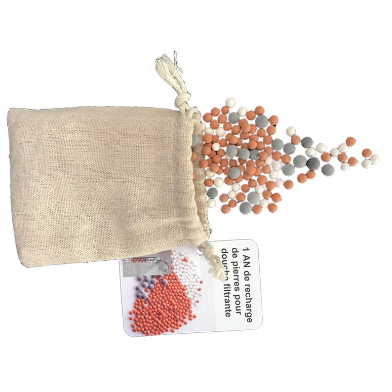 Chez Artémis Nature, nous vous proposons ce sachet de recharge de pierres afin de prolonger la durée de vie de votre pomme de douche. Changez les pierres, conservez la douchette, repartez pour une année d’économies !
