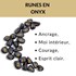 RUNES EN ONYX – L’Onyx est une pierre puissante qui vous aide à plonger au cœur de votre moi intérieur. Elle éclaire vos doutes, dissipe vos peurs et vous guide vers des réponses profondes et intuitives.