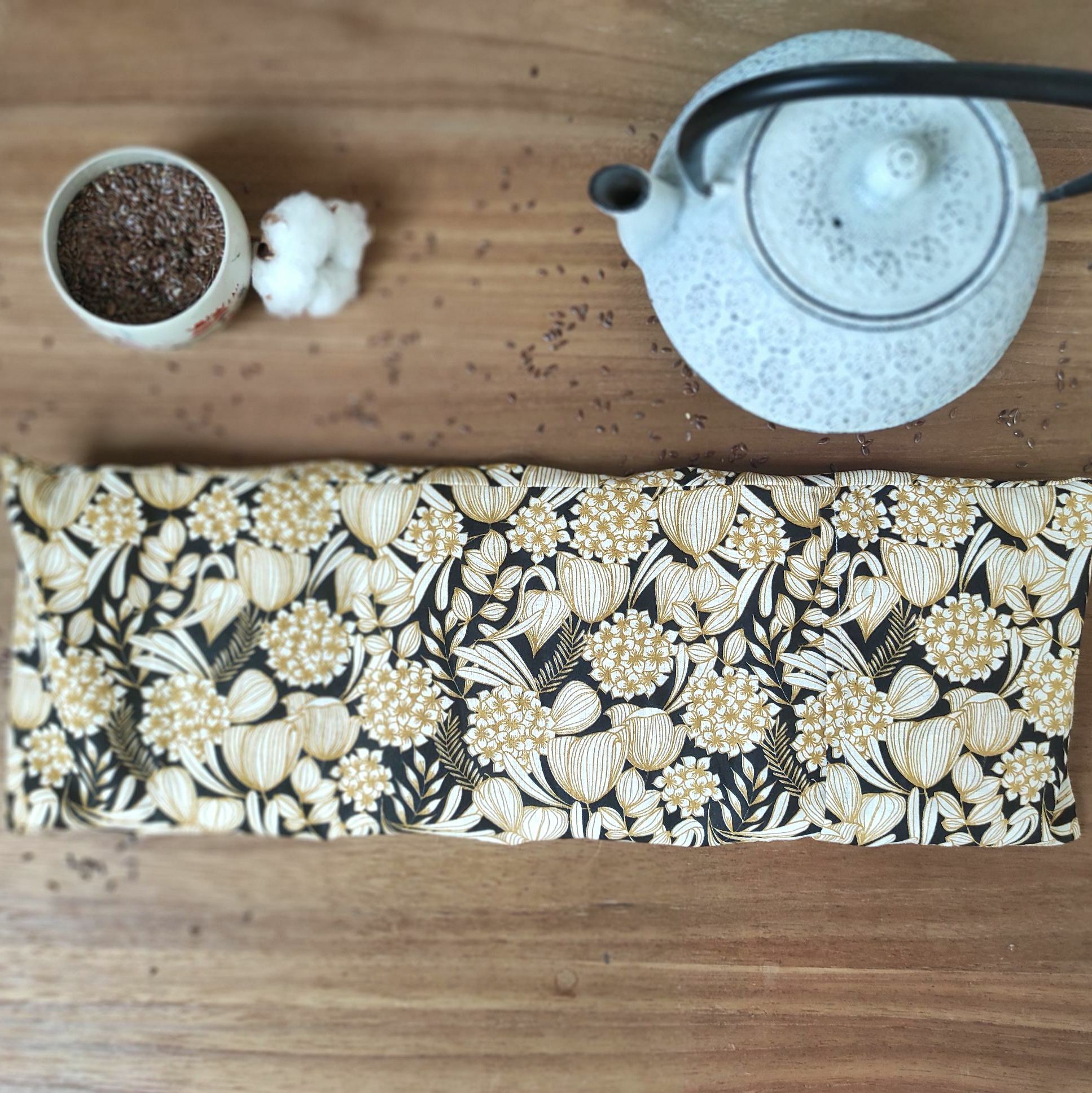 Ecologique de part ses matériaux et son absence d’eau. Cette bouillotte est 100% fait main en France et la graine de lin est cultivée dans nos régions.