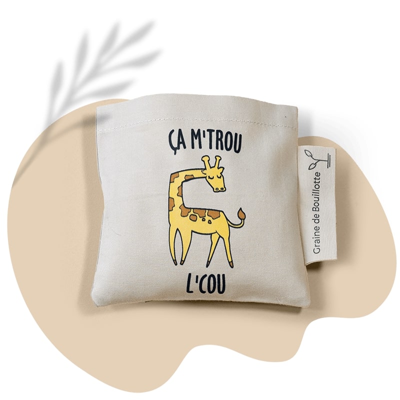 Optez pour cette chaufferette en graines de lin et profitez d'une chaleur douce avec humour !