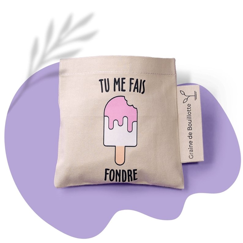 Optez pour cette chaufferette en noyaux de cerises et profitez d'une chaleur douce avec humour !