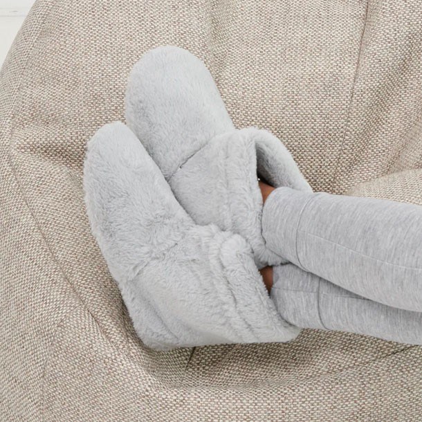 Lors des soirées d'hiver, enfilez ces pantoufles chauffantes en fausse fourrure parfumées à la lavande, propice à la relaxation... puis détendez-vous !