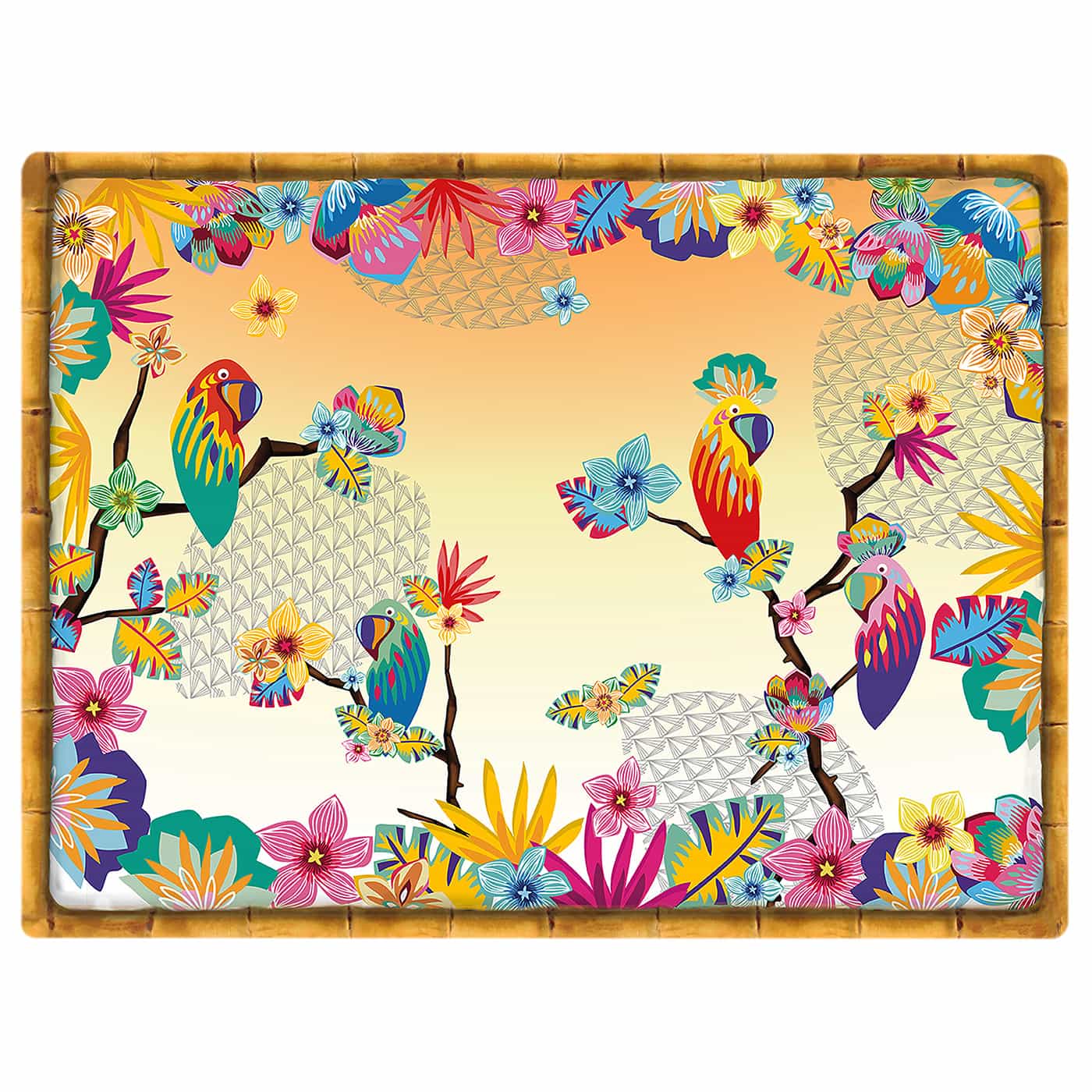 Ses belles couleurs tropicales et ses perroquets sublimeront votre table. Ce set de table est vendu par 6 pièces.