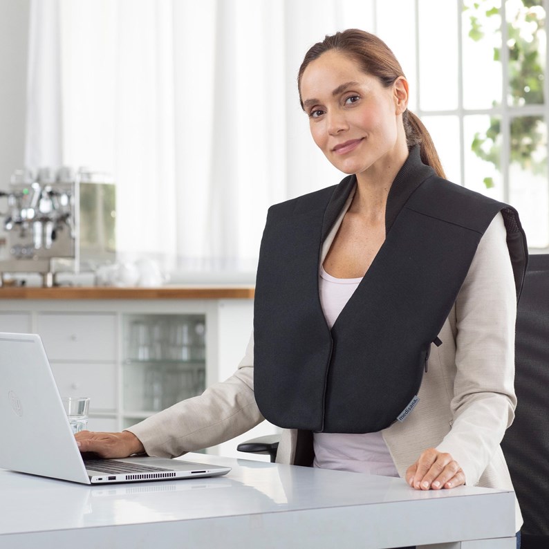 La cape chauffante OL 100 de medisana est une cape chauffante courte au look business élégant. Son design sobre et de grande qualité s'intègre discrètement dans tout environnement de travail et convient parfaitement pour être portée discrètement au bureau ou à la maison. Grâce à son matériau agréablement léger, il est tout aussi facile à enfiler sous une veste ou un veston. Pour une utilisation particulièrement simple, la cape chauffante est équipée d'une fermeture magnétique sur le devant.