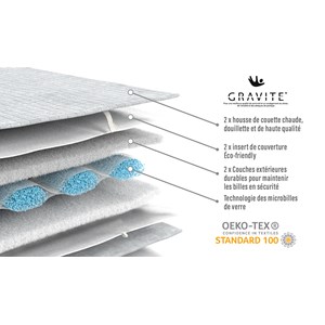 - Nous recommandons de laver la housse de la couverture lestée Gravité® à une température maximale de 40°C et l’insert de la couverture Gravité® à une température maximale de 30°C.
