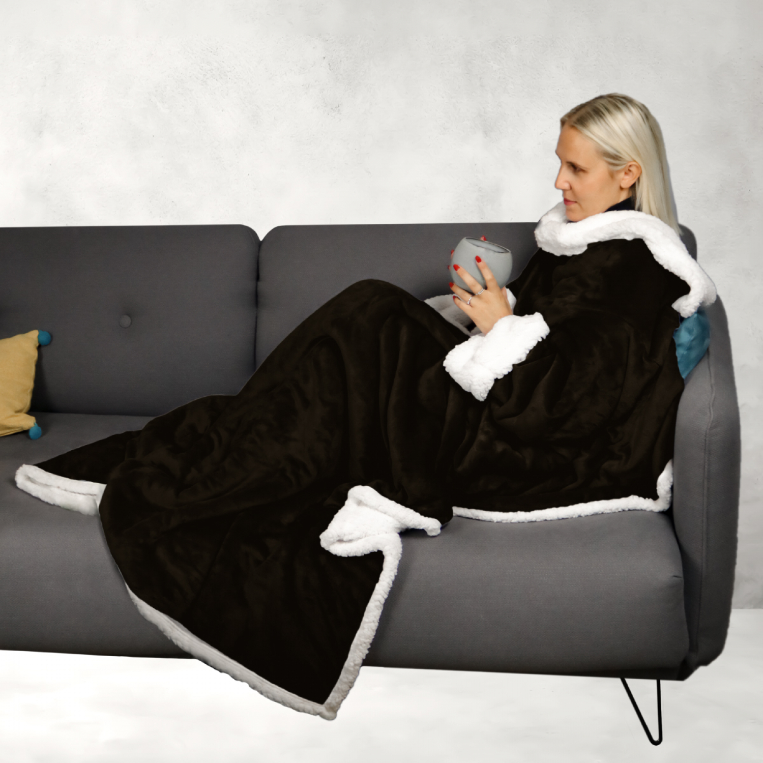 Grâce à sa  double face flanelle et sherpa , ce plaid avec manches apporte d'un côté, un  toucher   « peluche » et de l'autre, un côté « velours ».   Confortable, soyeux et réconfortant , il vous sera vite indispensable.