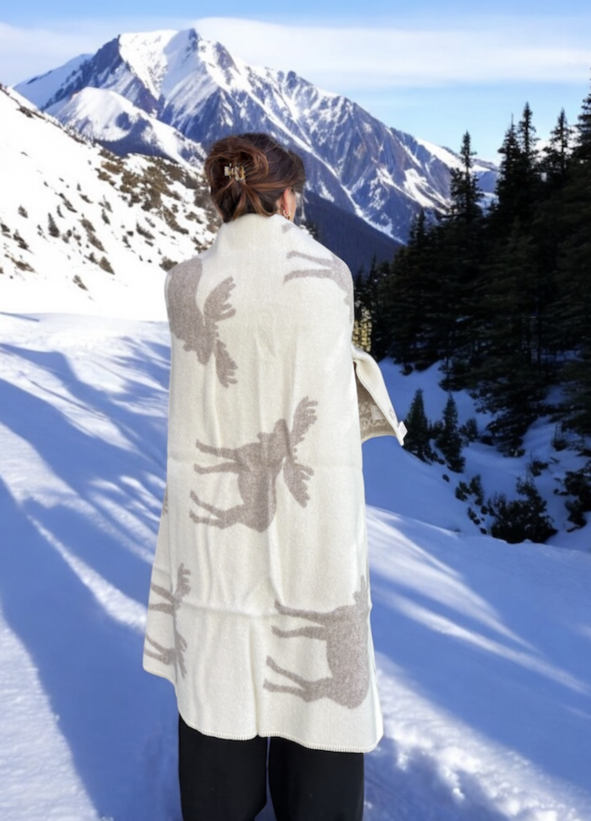 Plaid en laine réversible moose plaids grey white