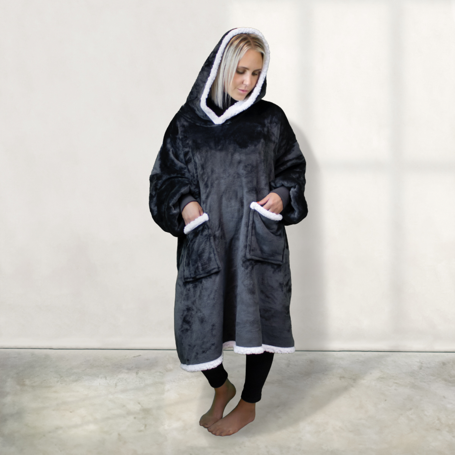 Sweat capuche + poches - sherpa flanelle