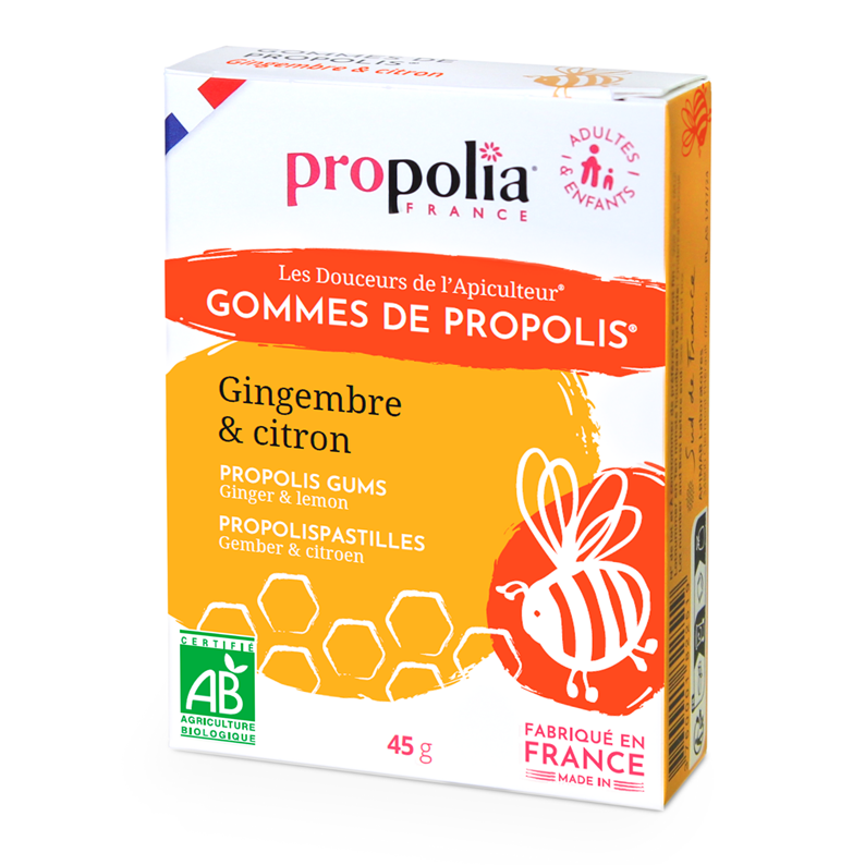 - Gommes propolis et gingembre, pour le bien-être de la gorge