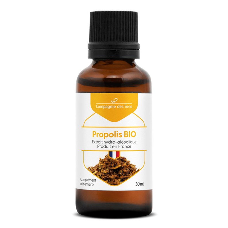 Cet extrait hydro-alcoolique de propolis est certifié BIO par Ecocert (FR-BIO-01) et garanti 100% pur et naturel.