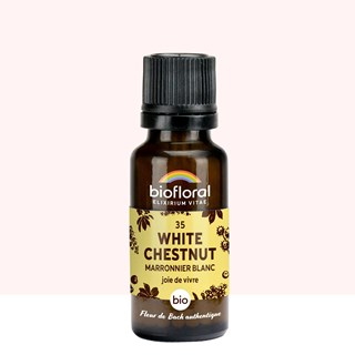 La Fleur de Bach 35 White Chestnut - Marronnier Blanc en granules bio de Biofloral vous accompagne durant ces instants. Elle joue un rôle pour vous soutenir dans la gestion de ces pensées persistantes et pour vous aider à retrouver un esprit serein, propice à des réflexions constructives.