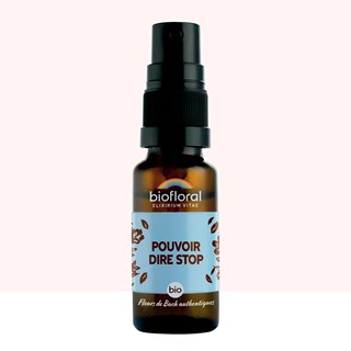 Découvrez le Complexe Pouvoir Dire Stop bio en spray de Biofloral. Cette synergie de 6 Fleurs de Bach biologiques vous accompagne pour vous aider à relever vos défis, éviter les erreurs répétitives et calmer les pensées incessantes. Ce complexe permet de vous adapter aux changements, surmonter le découragement et être fier de la personne que l'on devient.