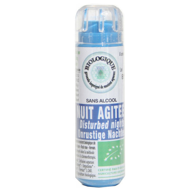 Kosmeo respecte rigoureusement les formules du Dr Bach pour produire les Fleurs de Bach bio tels que le complexe Nuit agitée. Ces élixirs floraux sont fabriqués artisanalement avec des fleurs sauvages , cueillies puis infusées dans de l' eau de source où elles vont libérer toute leurs qualités. Les granules de saccharose (sucre) sont ensuite imprégnées de la macération florale ainsi obtenue.