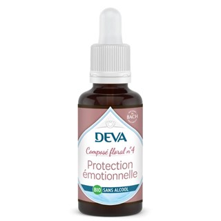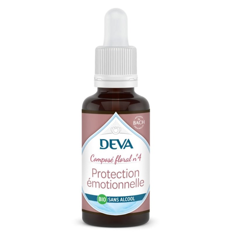 Le composé floral Protection émotionnelle n°4 du Laboratoire DEVA est un élixir floral biologique dédié à l'équilibre émotionnel. Reconnu pour accompagner sensibilité équilibrée, il est fabriqué à la main dans le Vercors selon la méthode originelle du Dr Bach et certifié bio par Ecocert FR-BIO-01.