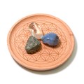 - Déposez vos pierres dans la coupelle en bois au motif fleur de vie.