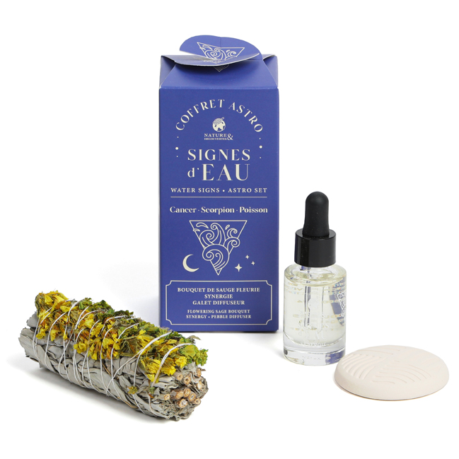 - Ce coffret astro spécialement pensé pour les signes d'eau évoque les qualités associées à ces signes : l'empathie, l'intuition, l'imagination et la flexibilité.