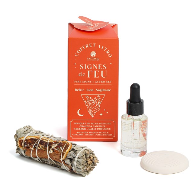 - Ce coffret astro spécialement pensé pour les signes de feu évoque les qualités associées à ces signes : la créativité, l'optimisme, le leadership naturel et l'indépendance.