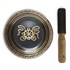 Ce bol chantant s’accompagne d’un coussin rembourré pour le poser et d’une masse en bois pour le faire vibrer.