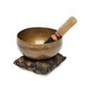 Ce bol chantant est chargé des énergies du lieu où il a été fabriqué. Il s’accompagne d’un coussin en tissu satiné sur lequel le reposer et d’une masse en bois pour le faire sonner.