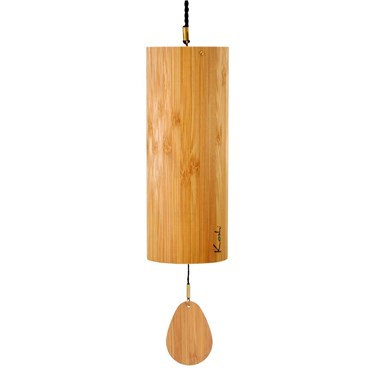 - Le carillon est fabriqué artisanalement dans les Pyrénées françaises. Son cylindre est plaqué en bois de bambou huilé, ce qui lui confère une allure élégante. L'intérieur est composé de huit baguettes en bronze, de tailles différentes, martelées par une perle de verre suspendue à un cordon, dont l’extrémité se termine par une fine feuille en bois de bambou.