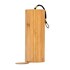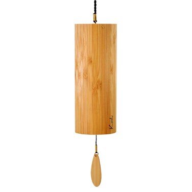 - Le carillon est fabriqué artisanalement dans les Pyrénées françaises. Son cylindre est plaqué en bois de bambou huilé, ce qui lui confère une allure élégante. L'intérieur est composé de huit baguettes en bronze, de tailles différentes, martelées par une perle de verre suspendue à un cordon, dont l’extrémité se termine par une fine feuille en bois de bambou.