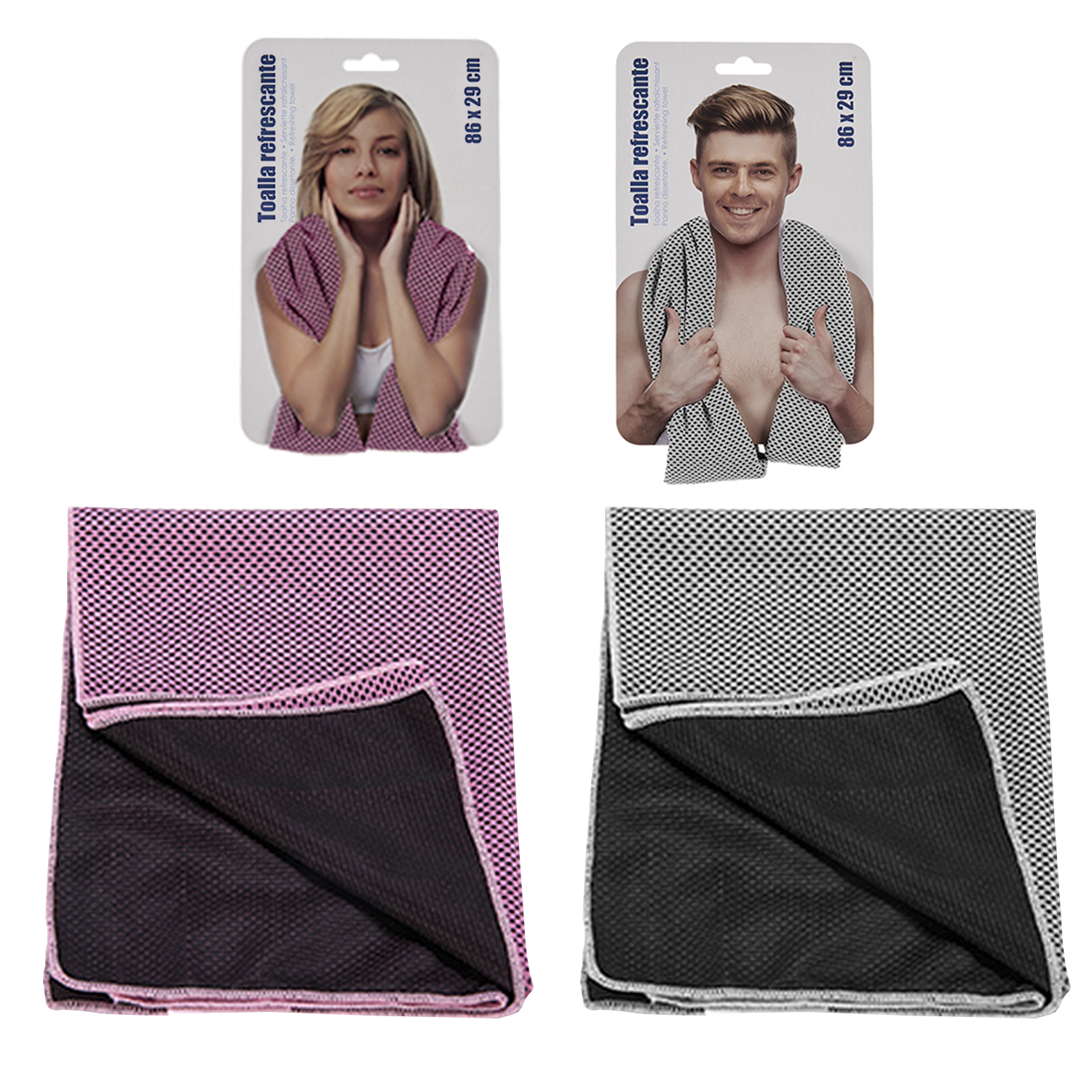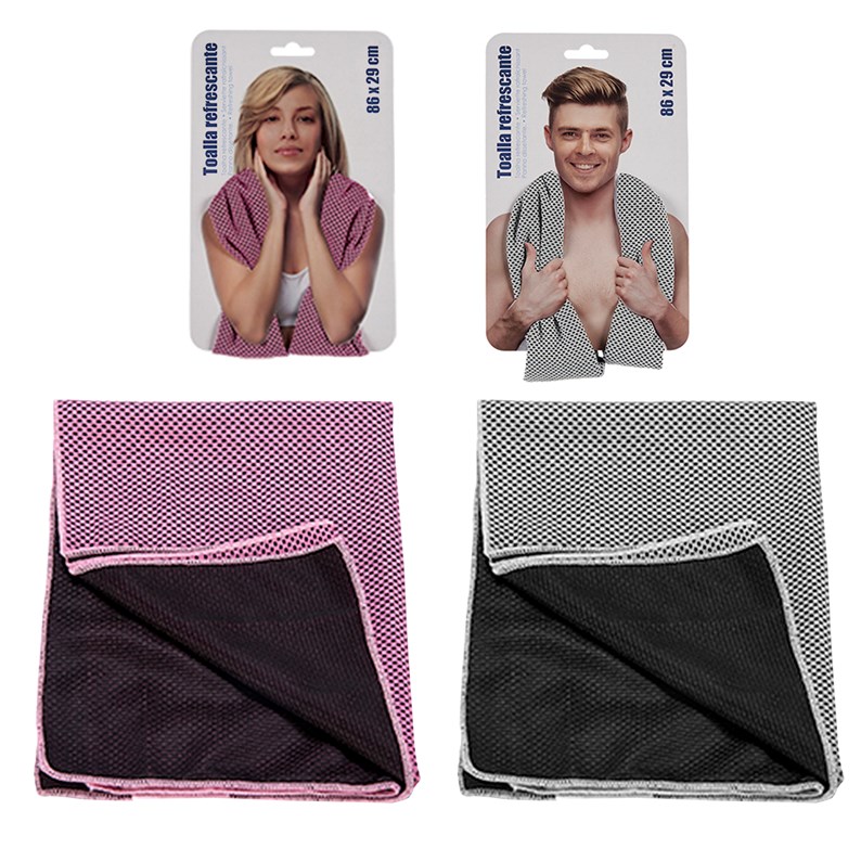 Serviette rafraîchissante 86x29cm. 2 couleurs aléatoires.