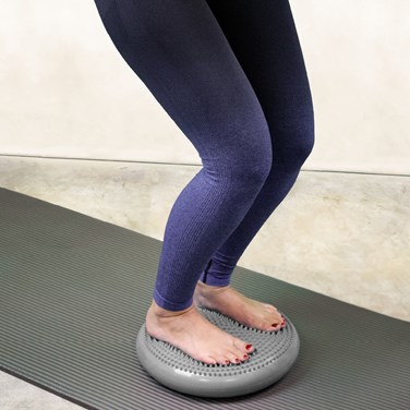 Composé d’un tissu en matière PVC et de picots renforcés, ce coussin peut supporter jusqu’à 150kg et perdure dans le temps. Il s’utilise en étant assis ou debout, de manière idéale, dans le cadre d’activités telle que le Pilates.