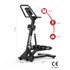 Côté ergonomie, le guidon fixe assure une posture stable, tandis que les pédales antidérapantes sécurisent chaque appui. Le repose tablette, le repose gourde et les espaces de rangement intégrés facilitent l'organisation de la séance. Les stabilisateurs de niveau compensent les irrégularités du sol afin de garantir une assise stable de l'appareil.