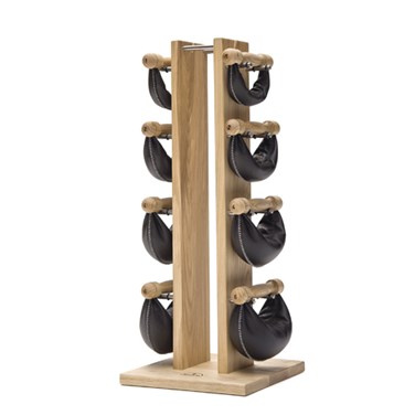 - Forte d’une structure en bois de frêne massif et d’un support en acier inoxydable, la Swing Tower est dotée de huit supports métalliques qui accueillent 4 paires d’haltères de balancement en frêne et cuir naturel : les Swing Bells.