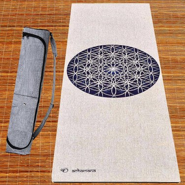 Pack tapis yoga chanvre fleur de vie bleue + sac liège