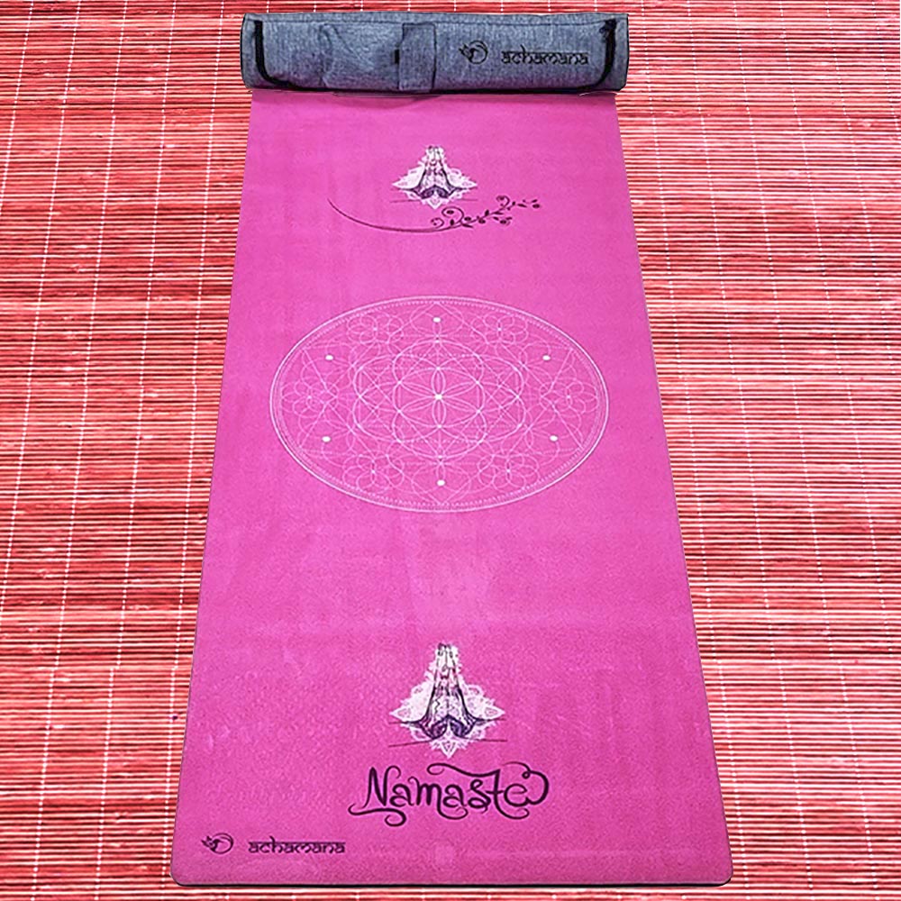 Tapis de yoga épais namasté rose 6mm
