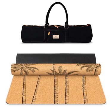 Tapis de yoga liège & caoutchouc naturel antidérapant royal palm avec sangle+sac