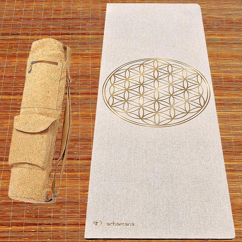 Tapis yoga chanvre fleur-vie + sac-liège