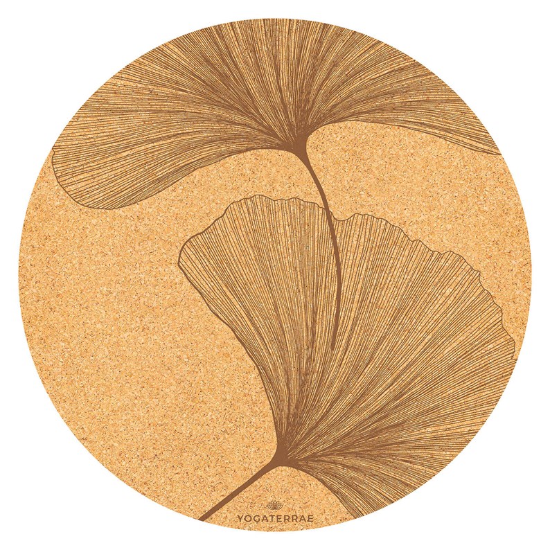 Tapis yoga rond ginkgos liège-caoutchouc