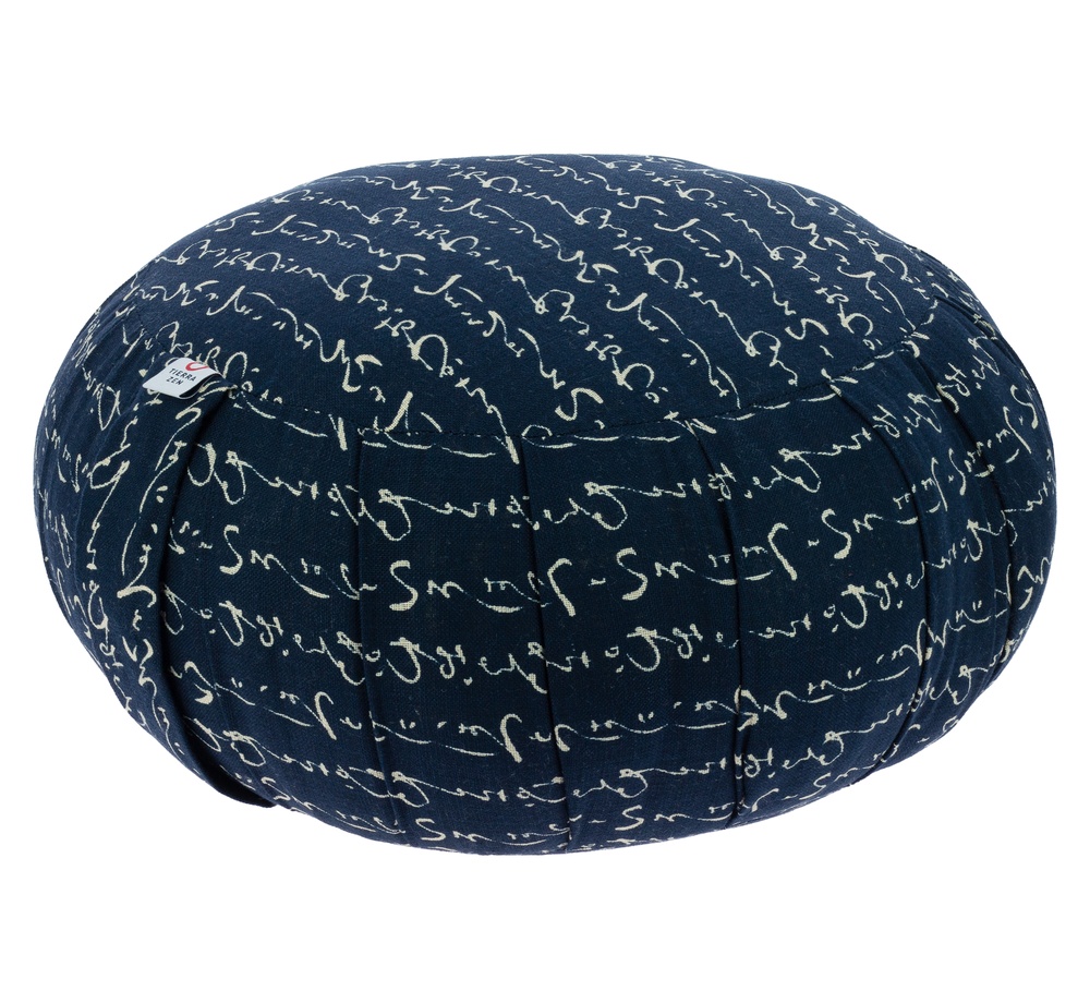 Ce zafu est fabriqué à la main en Espagne avec un tissu en coton importé du Japon, renforcé par des triples coutures pour plus de solidité. Le motif, inspiré de la calligraphie Hiragana, le syllabaire japonais cursif, fait référence à un poème bouddhiste sur l'impermanence. Il nous rappelle la nature éphémère de la vie et la beauté de l'instant présent.