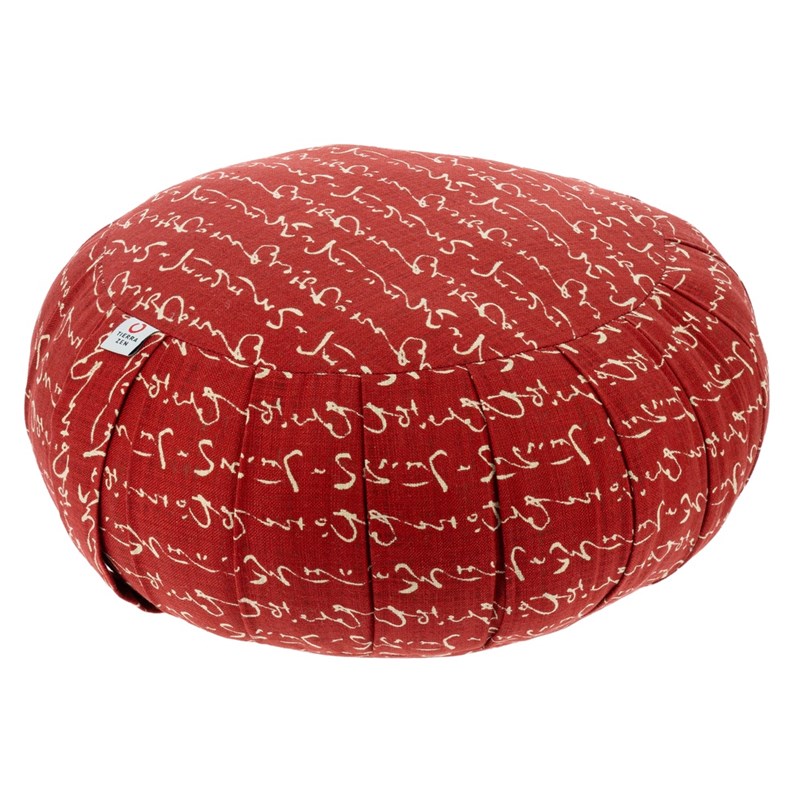 Ce zafu est fabriqué à la main en Espagne avec un tissu en coton importé du Japon, renforcé par des triples coutures pour plus de solidité. Le motif, inspiré de la calligraphie Hiragana, le syllabaire japonais cursif, fait référence à un poème bouddhiste sur l'impermanence. Il nous rappelle la nature éphémère de la vie et la beauté de l'instant présent.
