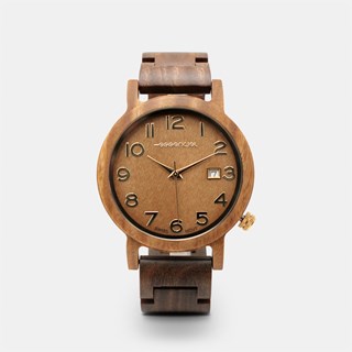 Son boitier de 42 mm et son bracelet sont entièrement sculptés en Gaïac, un bois très dur à grain fin aussi appelé bois de fer ""Iron wood"". Cette essence de bois à forte densité, l'une des plus élevée au monde (1.30) confère à la montre London une durée de vie incroyable et une haute résistance aux chocs.