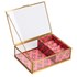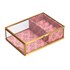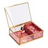 - Le détail qu'on adore : les compartiments de la boîte à bijoux sont tapissés d'un textile imprimé rose qui ajoute une belle touche de couleur.