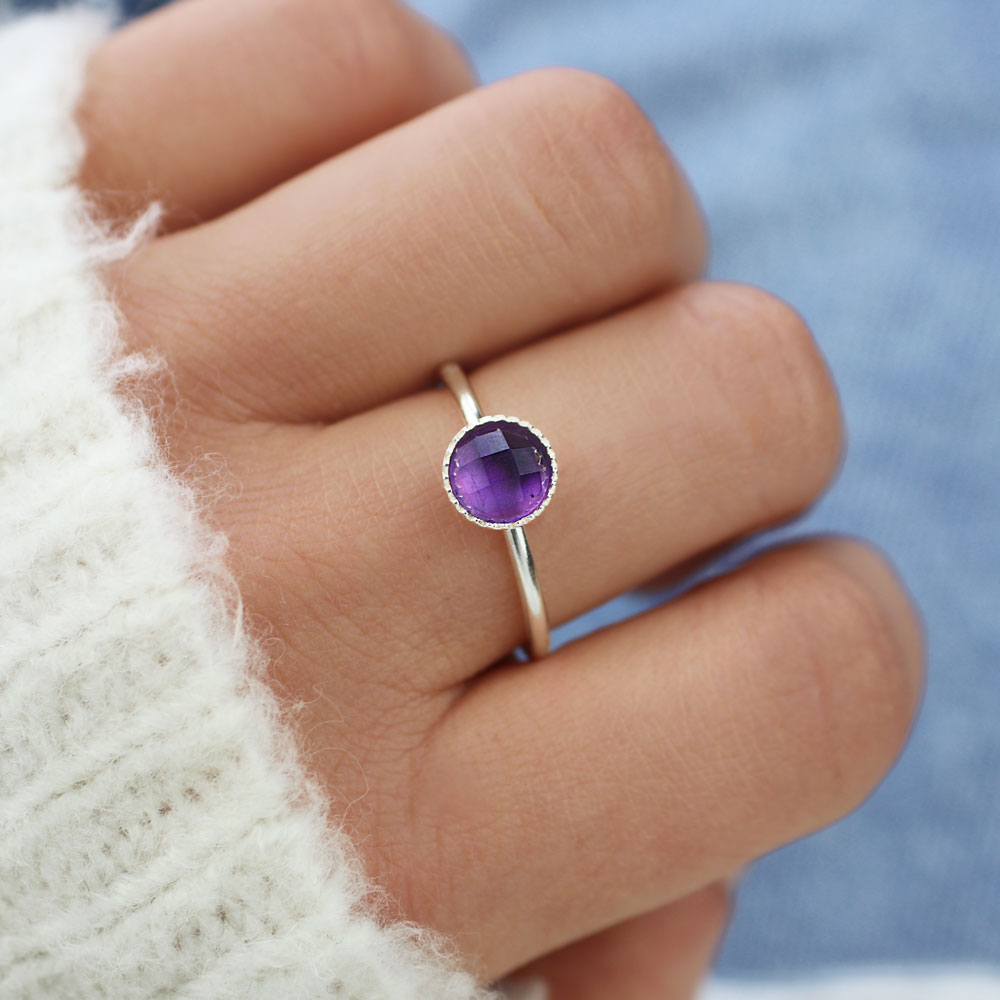 Cette bague fine est ornée d'une jolie pierre naturelle à facettes sélectionnée avec soin.